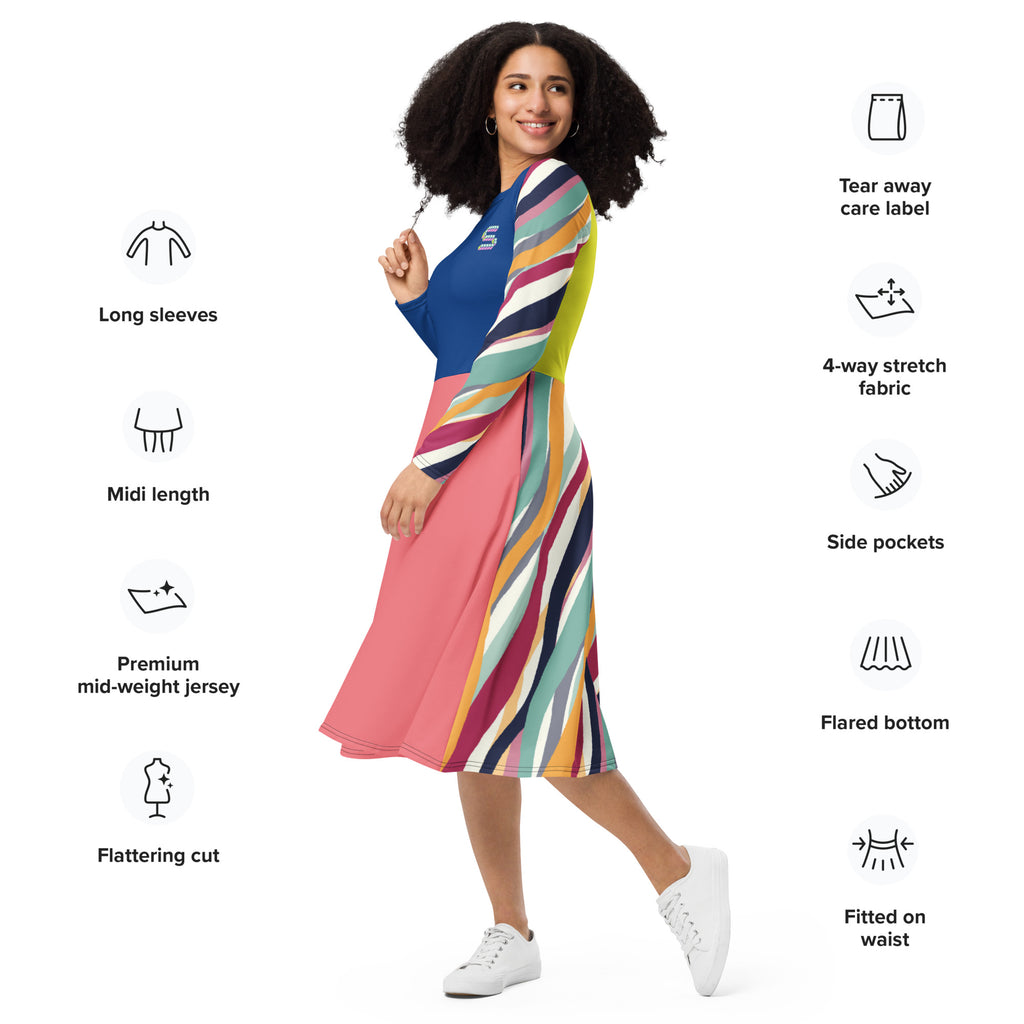 Meet your new favorite dress! Its soft fabric and flattering cut will ensure you feel comfortable and feminine all day long. Plus, the fitted waist and flared bottom part of the dress will accentuate the wearer’s naturally beautiful silhouette. The best part about the dress? It. Has. Pockets.